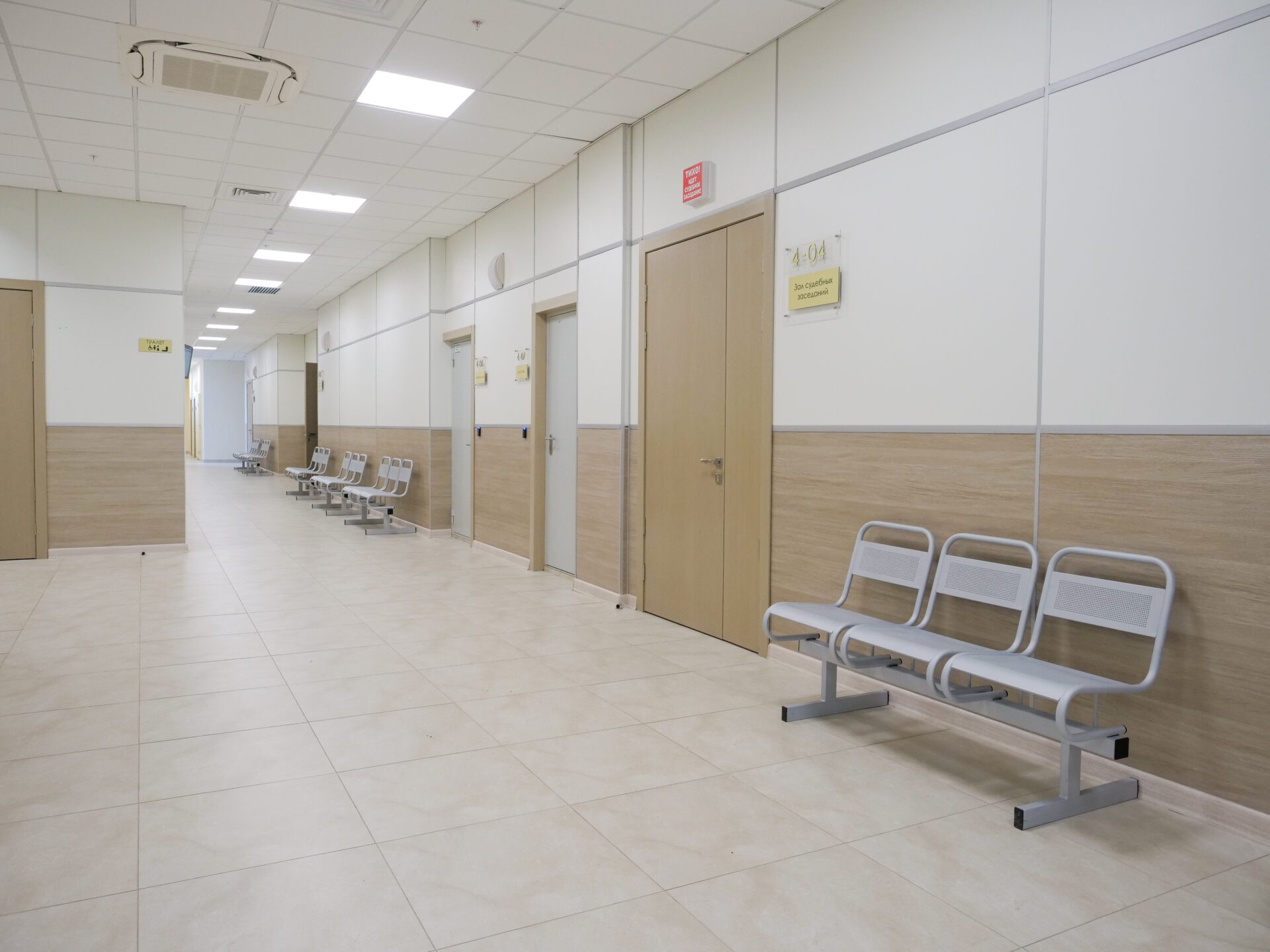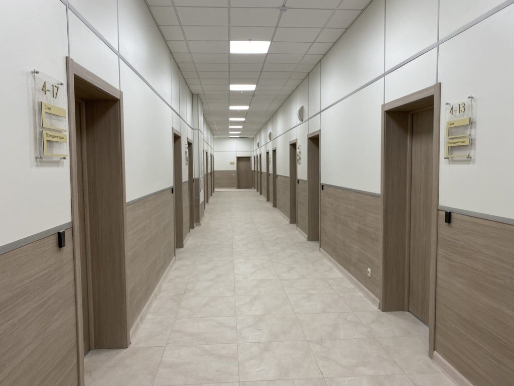 Отделка велась во всех помещениях суда: коридоры, залы заседаний и рабочие кабинеты. По словам подрядной организации удалось сдать объект на 8 месяцев раньше.